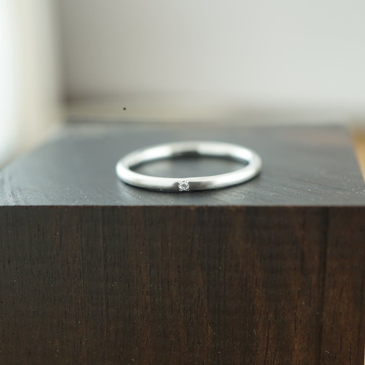 細身のラインに、ひと粒のラボグロウンダイヤを留めたシルバーリング。